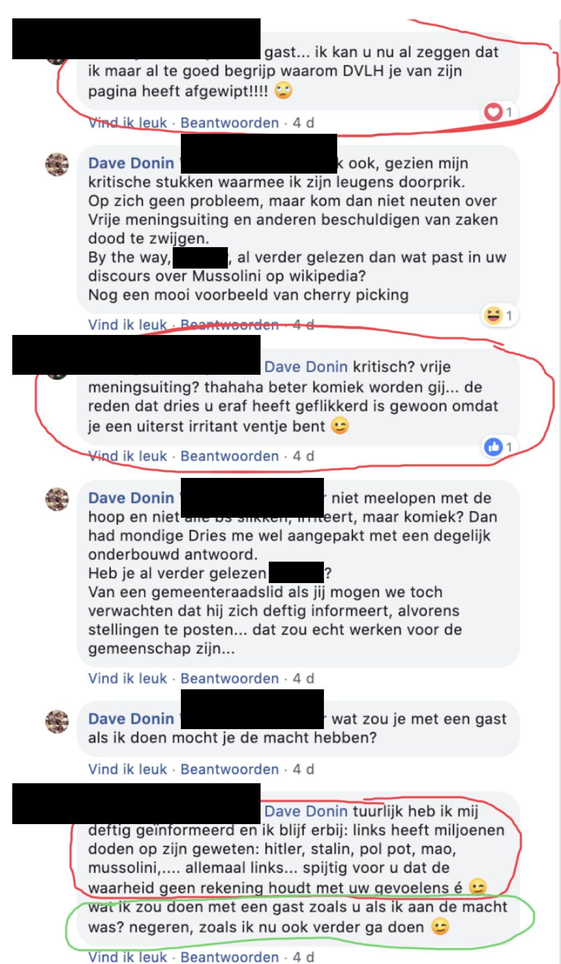 Het hele gesprek werd gewist door de beheerder, alvorens ik er zelf over contact nam met hem. Terwijl er best wat getolereerd wordt in de groep, als ’t van die kant komt. Geloof me. Dat bevestigde deze persoon mij dus in een privé bericht.
