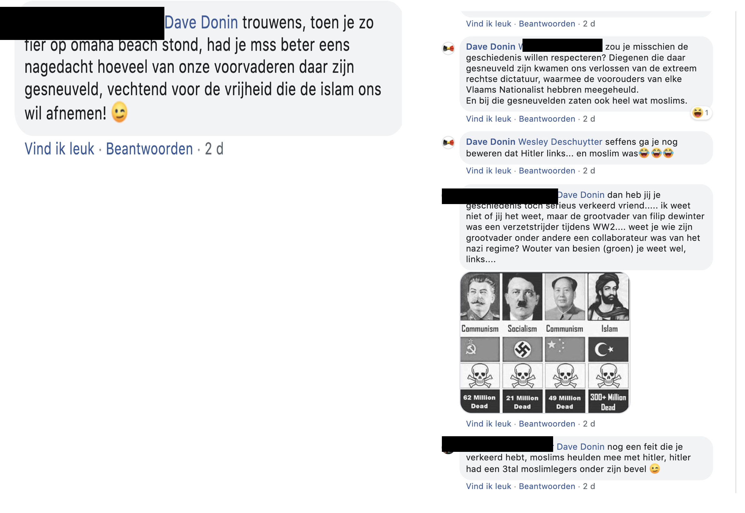 De man in kwestie beweerde bij herhaling dat Hitler en Mussolini links waren en dat links dus veel meer doden op zijn geweten heeft dan extreem rechts. Dat is tegenwoordig bon ton in die kringen, de holocaust in de schoenen van links proberen te schuiven.