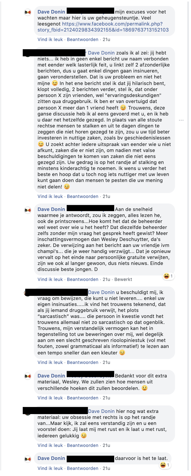 En uiteindelijk de reacties van betrokkene op dit stuk…