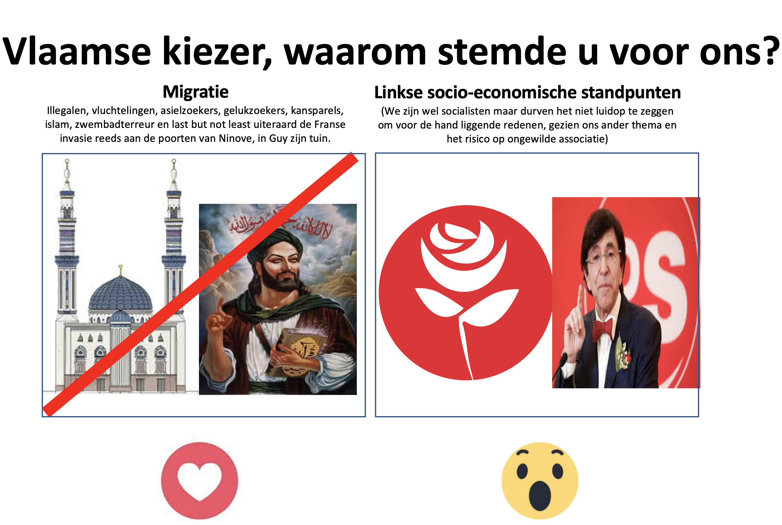 Een programma dat bulkt van de linkse sociale voorstellen voor het “eigen volk”. Waarom spelen ze dat aspect niet meer uit, om te beginnen in de naam.