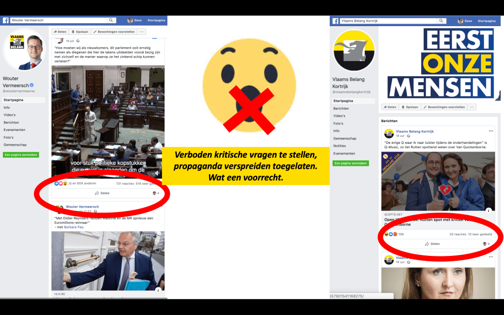 Diezelfde dag onderging Marc Van Ranst een ban van FB en Twitter omdat hij volgens VB jongeren hen met dierennamen had verweten? Ter zijde.