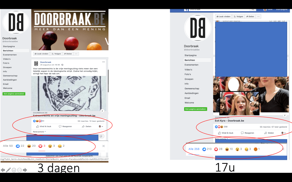 Het verschil in reacties, alsook in likes, geven een indruk van wat Doorbraakpubliek beroert.